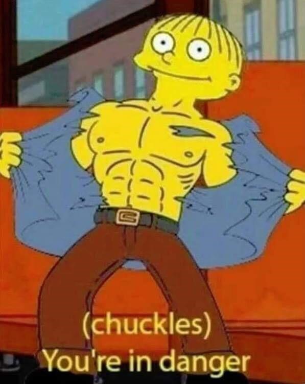 Ralph in danger refers to an image of ralph wiggum from the simpsons sitting on a bus with the caption chuckles i m in danger the screenshot developed into a reaction image paired with captions where one might see themselves in danger. Ralph wiggum danger meme generator the fastest meme generator on the planet.